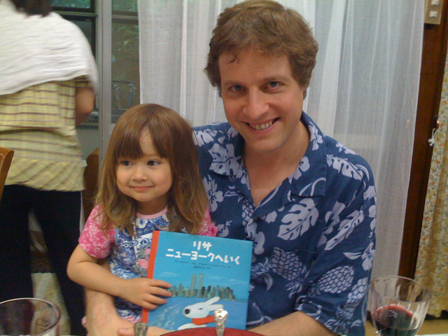 Atsuko and I visited our friends Wake and Naoko in Kamakura this weekend. Here is Wake and his oldest daughter Aika, who is holding a book we gave her about visiting New York City (subtle hint, you might say).